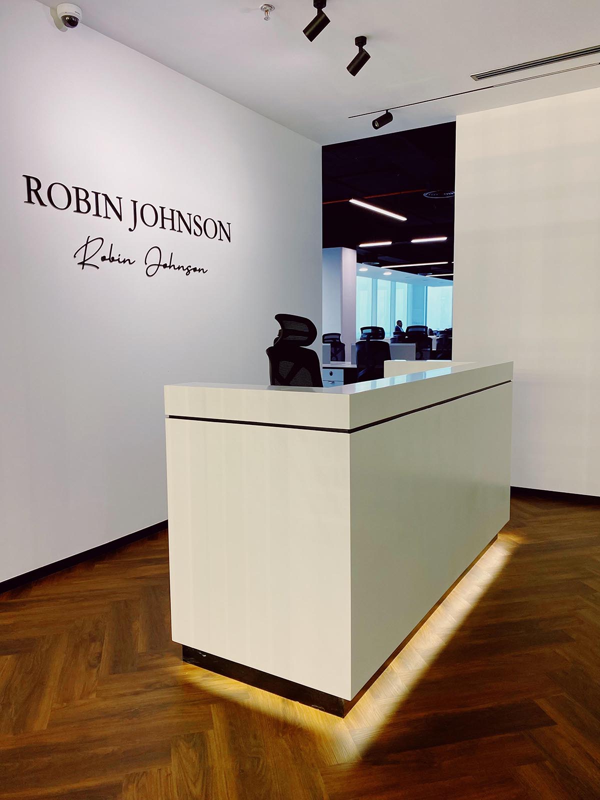 Located in a premium high-rise setting, the Robin Johnson Office was designed as a contemporary workplace that embodies sophistication, efficiency, and brand identity. The space seamlessly balances functionality with aesthetics, creating an environment where professionalism meets comfort and collaboration. Robin Johnson Office – Client Brief & Design Solution